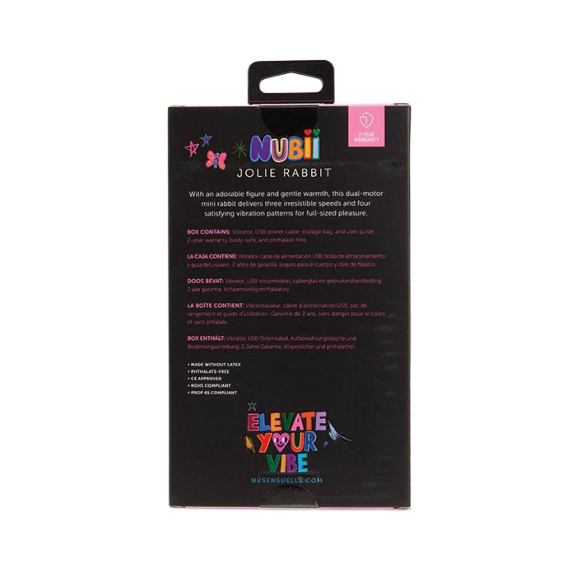 Dale un nuevo impulso a tus pasos con la sensual calidez de nuestro seductor Nubii Jolie Mini Rabbit. Con una adorable figura, este mini vibrador bala con doble motor de Nu Sensuelle ofrece tres irresistibles velocidades y cuatro satisfactorios patrones de vibración para unas sensaciones de lujo. Activa la función de calentamiento con control independiente y alcanza nuevas cotas de éxtasis rindiéndote al seductor encanto de Jolie. ¡Su pequeño tamaño lo convierte en el compañero de viaje ideal que, sin duda, te proporcionará un placer intenso dondequiera que estés!