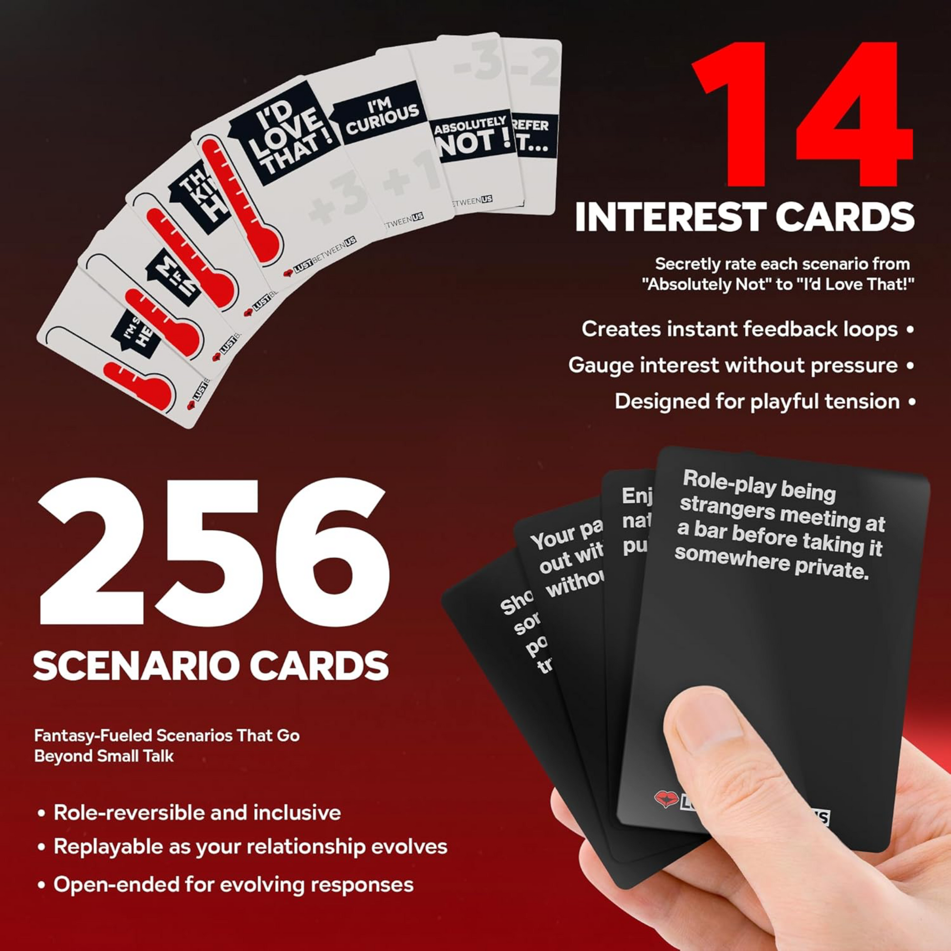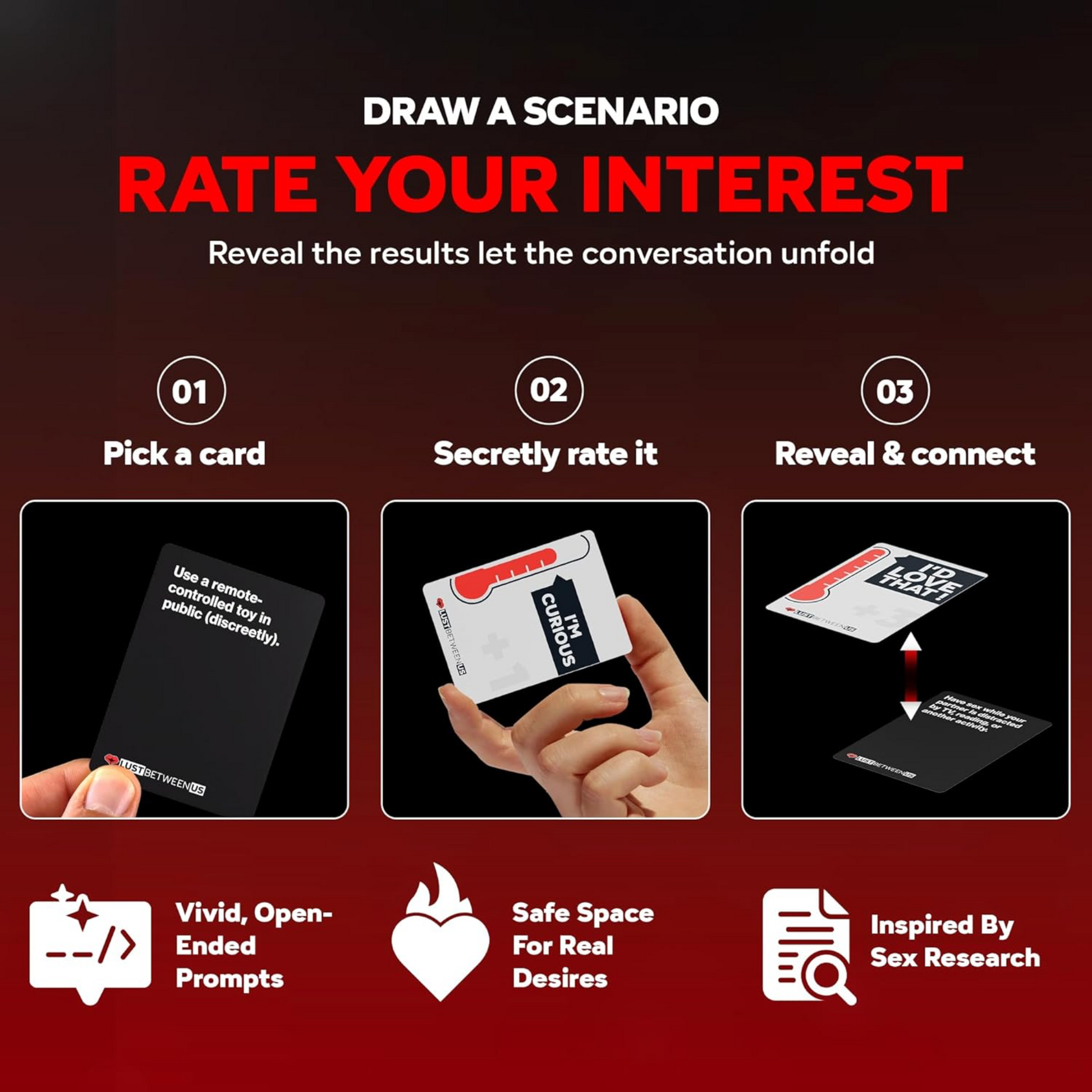 Ever whispered a fantasy at 2 AM, then pretended it never happened? Sharing your deepest desires can feel terrifying. Lust Between Us makes it playful, exciting, and judgment-free to finally say what turns you on. Whether you’re a longtime couple craving a spark or brand-new lovers exploring the unknown, these cards turn date night into discovery night.