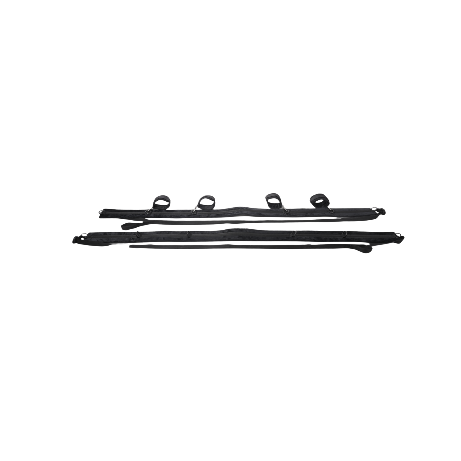 Surrender your body to entrancing restraints anywhere, anytime you want with the ultra-portable and adaptable No Matter Where Restraint System! Give your partner total control as you position yourself spread and restrained against the bed, or take your play to new heights by adjusting the straps to fit snugly against the door for standing bondage and tantalizing teasing. The possibilities are endless with the nearly 10ft of adjustable straps to tether your partner to anything you can imagine for the most erotic predicaments. Four included cuffs will keep them right where you want them in any position you like with the 6 D Ring connectors per strap stretched across 5ft of padded webbing.
