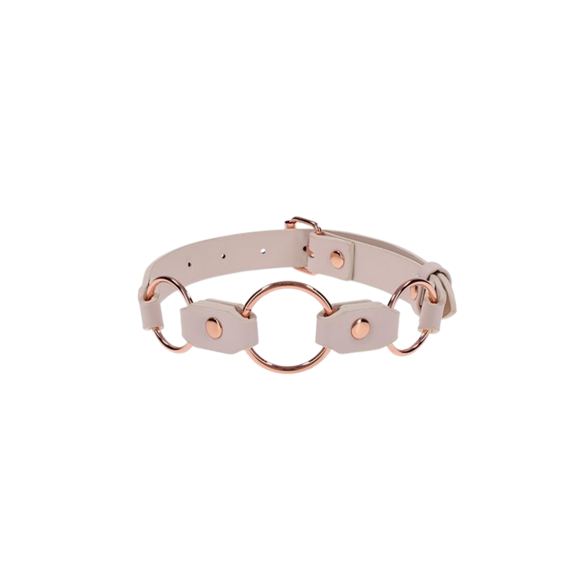 Stay decked in only the finest luxury BDSM wear with the Peaches N CreaMe Ring Day Collar. Stylish and seductive, this bold accessory turns heads and sparks curiosity, hinting at your kink to those in the know. Crafted from smooth, comfortable faux leather, it features three rose gold rings that gleam with every move. Pair it with your favorite leash, a teasing set of clamps, or wear it solo to show you're ripe for the taking.