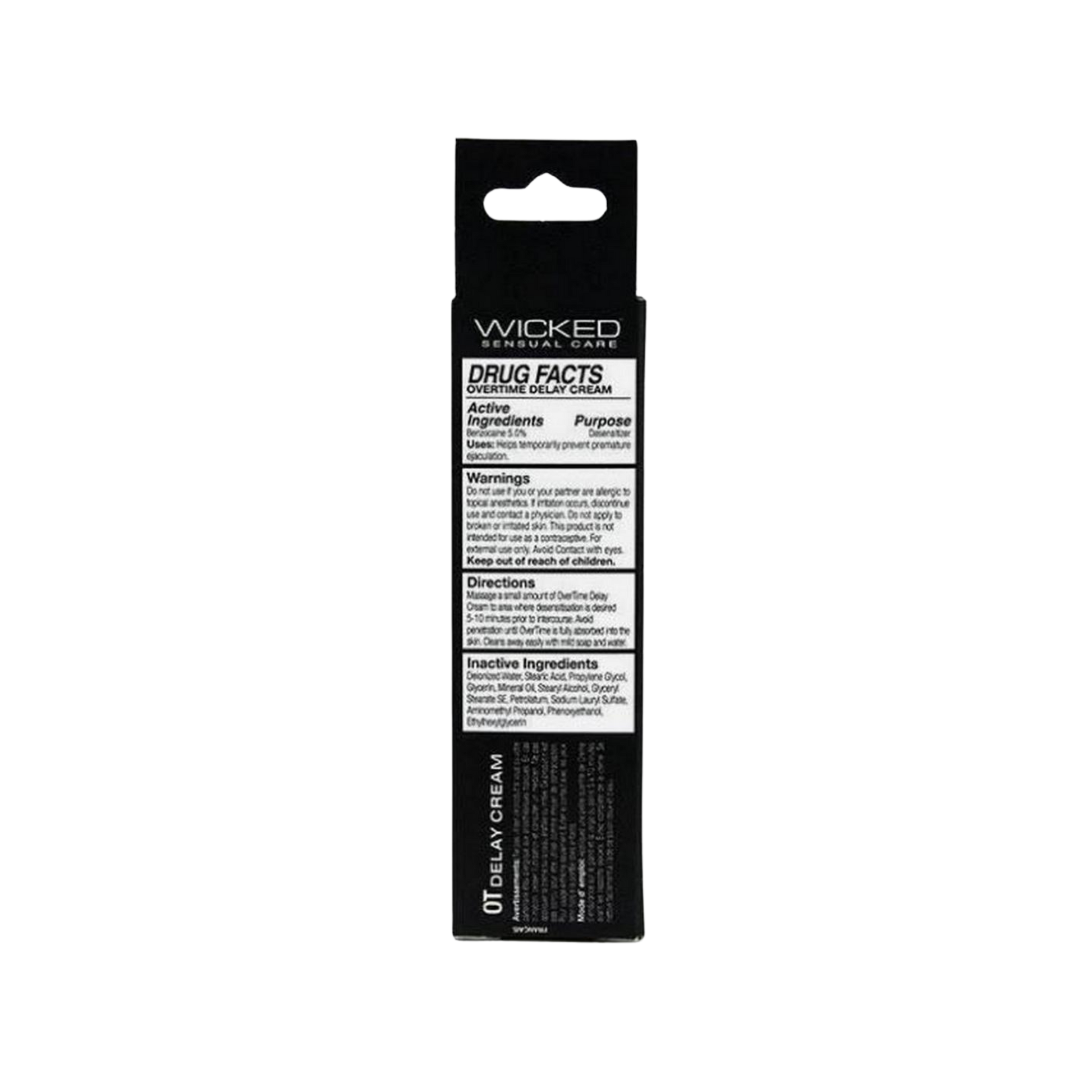 Enjoy a new confidence with OverTime. Wicked Sensual Care Collection OverTime Delay Cream for Men contains 5% Benzocaine to temporarily reduce hyper-sensitivity to delay ejaculation by gently easing the intensity of sensation and allows you the ability to put your love-making into overtime.